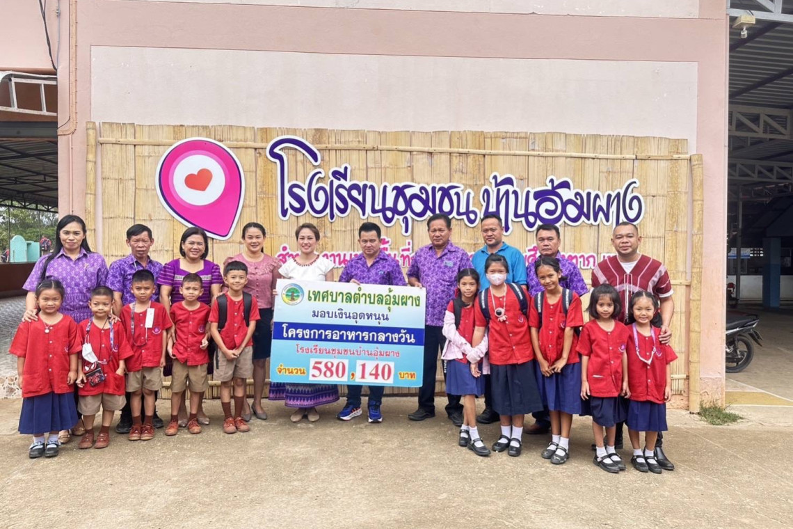 นายสเดชชัย สุวรรณจันทร์ "นายกต้อน" นายกเทศมนตรีตำบลอุ้มผาง อ.อุ้มผาง จ.ตาก และคณะผู้บริหารได้มอบเงินสนับสนุน เพื่ออุดหนุนโครงการอาหารกลางวันให้กับโรงเรียนชุมชนบ้านอุ้มผาง จำนวน 580,140 บาท เพื่อให้เด็กนักเรียนในเขตเทศบาลตำบลอุ้มผาง แผ่นดินดอยลอยฟ้า ได้รับประทานอาหารตามหลักโภชนาการที่ดี ได้รับคุณค่าทางอาหารที่สมบรูณ์ ตามหลักอนามัยโภชนาการ มุ่งเน้นในการให้เด็กนักเรียนได้รับอาหารที่ดีมีคุณภาพครบสูตรอาหาร 5 หมู่ ที่เป็นโภชนาการที่ดีให้เด็ก ในโครงการอาหารกลางวัน ที่มีอาหารกลางวันมีคุณค่าทางโภชนาการเสริมสร้างการเจริญเติบโต เป็นไปตามเกณฑ์ด้านอนามัยและสาธารณสุข