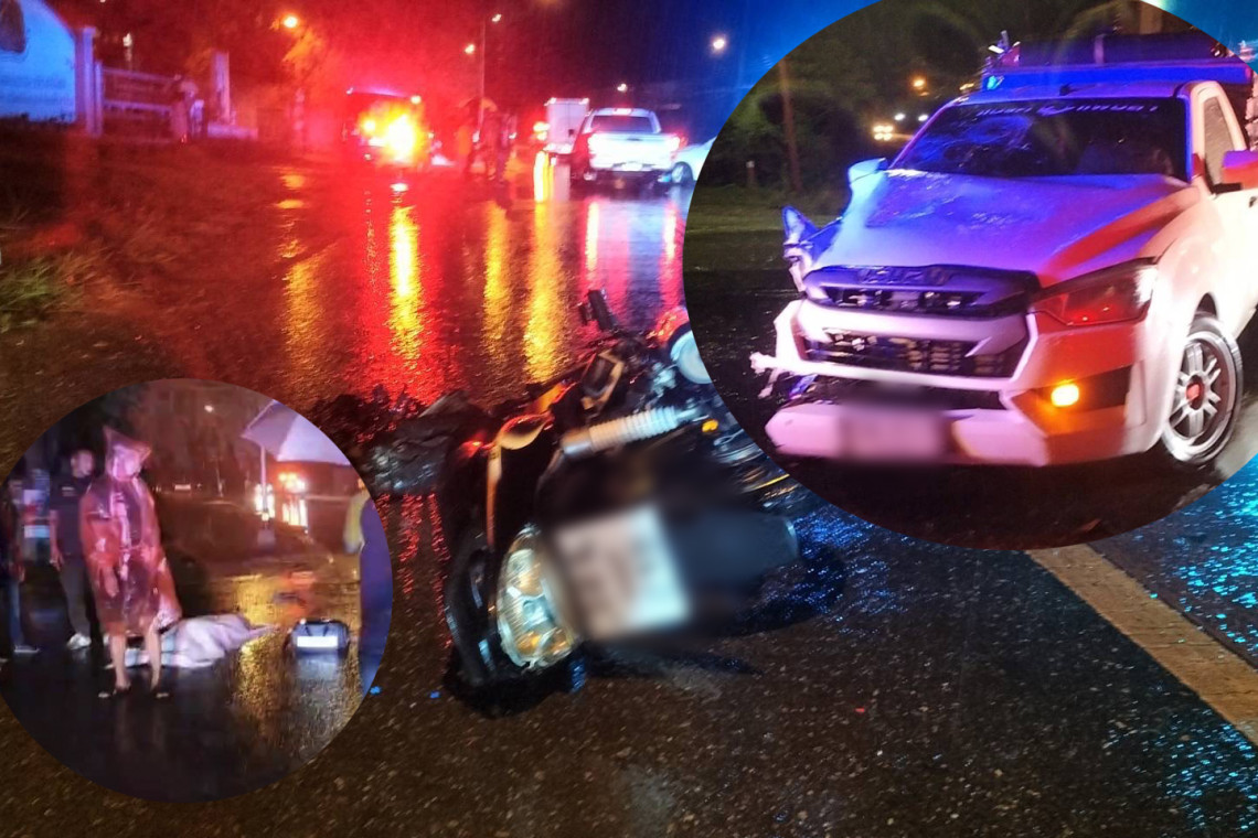 ที่เกิดเหตุบนถนน มีสภาพน้ำฝนขังบนผิวถนนเนื่องจากฝนตก พบรถ จยย ยามมาฮ่า สปาร์ค 110 สีแดงดำ ทะเบียน ขตจ 815 ราชบุรี สภาพพังยับ ล้มคว่ำอยู่กลางถนน พบศพผู้เสียชีวิต1 ราย เป็นชาย สภาพศพไส้ทะลักออกมาที่หน้าท้องอย่างสยดสยองเป็นชาย อายุ 40 ปี ที่อยู่ ต.สวนกล้วย อ.บ้านโป่ง จ.ราชบุรี คนขี่รถ จยย.เป็นพนักงานโรงงานผลิตยางรถยนต์ในอำเภอบางเลน ห่างกันพบรถกระบะยี่ห้อ อีซูซุ ดีแม็ก สีขาวตอนเดียว ทะเบียน ผฉ 8717 นครปฐม สภาพด้านหน้าขวาแก้มรถพังเสียหายยับเยิน ทราบชื่อคนขับ นาย ซันอ่อง อายุ 31ปี ชาวพม่าเป็นคนขับ ยืนรอให้การกับเจ้าหน้าที่ตำรวจในที่เกิดเหตุด้วยอาการตกใจ
