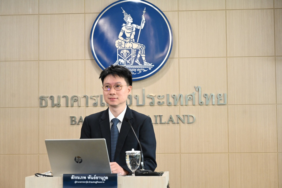นายสักกะภพ พันธ์ยานุกูล ผู้อำนวยการอาวุโส ฝ่ายเศรษฐกิจมหภาค ธนาคารแห่งประเทศไทย(ธปท.) เปิดเผยว่า ขณะที่การใช้จ่ายภาครัฐขยายตัวจากทั้งรายจ่ายประจำและรายจ่ายลงทุน ส่วนมูลค่าการส่งออกสินค้าที่ไม่รวมทองคำปรับเพิ่มขึ้นสอดคล้องกับการผลิตภาคอุตสาหกรรม ด้านจำนวนนักท่องเที่ยวต่างชาติที่ขจัดปัจจัยฤดูกาลแล้วฟื้นตัวต่อเนื่อง เสถียรภาพเศรษฐกิจ อัตราเงินเฟ้อทั่วไปลดลงจากหมวดพลังงานเป็นสำคัญ ตามค่าไฟฟ้าและราคาน้ำมันขายปลีกในประเทศที่ปรับลดลง ประกอบกับมีผลของฐานสูงในปีก่อน ขณะที่อัตราเงินเฟ้อพื้นฐานลดลงเล็กน้อย ด้านตลาดแรงงานโดยรวมฟื้นตัวตามภาวะเศรษฐกิจ สำหรับดุลบัญชีเดินสะพัดขาดดุลจากดุลบริการ รายได้ และเงินโอน ขณะที่ดุลการค้าเกินดุลเล็กน้อย