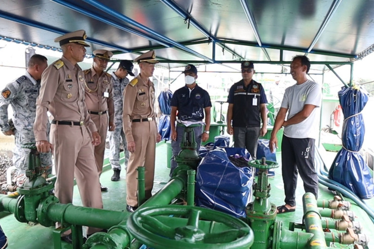 จากการทำงานเชิงรุก ด้านการข่าว อย่างต่อเนื่อง ของทัพเรือภาคที่ 1 (ทรภ.1) และ ศูนย์อำนวยการรักษาผลประโยชน์ของชาติทางทะเลภาค 1 (ศรชล.ภาค 1) ซึ่งได้ร่วมกับหน่วยงานภาครัฐที่เกี่ยวข้อง เข้าตรวจสอบเรือบรรทุกน้ำมันผิดกฏหมาย 2 ลำ ปริมาณน้ำมันกล่า 4.5 แสนลิตร ที่บริเวณ ปากน้ำประเเสร์ จังหวัดระยอง โดยเรือ ต.263 จาก กองเรือปฏิบัติการ ทัพเรือภาคที่ 1 เมื่อวันที่ 30 มิ.ย. 66 ที่ผ่านมา