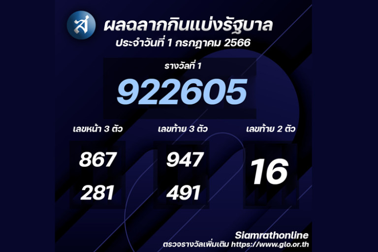 ผลสลากกินแบ่งรัฐบาลงวดประจำวันที่ 1 กรกฎาคม 2566 ผลหวย งวดวันที่ 01/07/66