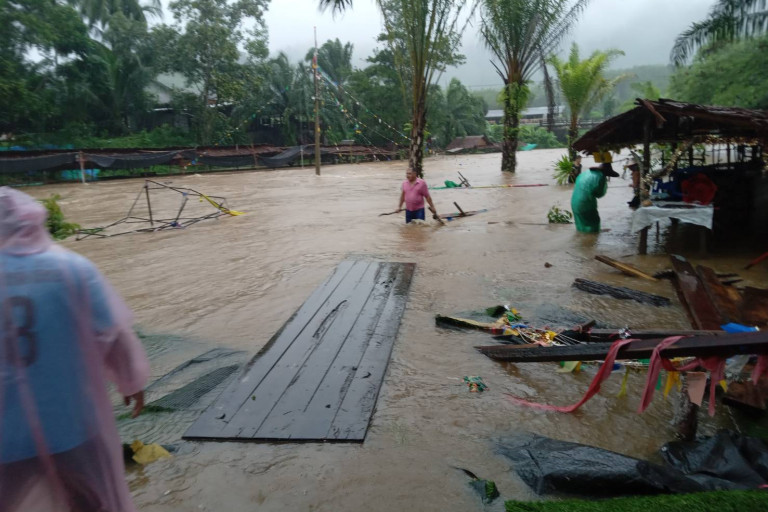 และอำเภอเมืองพังงา จังหวัดพังงา สถานการณ์ในพื้นที่อำเภอเมืองพังงา พบว่ามีฝนตกติดต่อกันตลอดทั้งคืนและระดับน้ำ ในคลองเพิ่มสูงขึ้น เบื้องต้น มีผลกระทบในพื้นที่อำเภอเมืองพังงา ต.ทุ่งคาโงก ม.1 ราษฎร ประสบภัย 30 หลัง ดินสไลด์ 1 แห่ง ม.2 ดินสไลด์ 3 จุด ม.3 ดินสไลด์ 1 จุด ม.4 ราษฎรได้รับผลกระทบ 35 ครัวเรือน ม.5 ดินสไลด์ 2 จุด ตำบลตากแดด ม.1.ต.ตากแดด.ฝนตกหนักน้ำล้นตลิ่งเข้าพี้นที่สวนปาล์มในพี้นที่ต่ำแต่ยังไม่ได้รับความเสียหาย ม.2.ตากแดดน้ำมาแรงมากทำให้ฝายที่กำลังสร้างยังไม่เสร็จได้รับความเสียหาย ม.3 ต.ตากแดด ฝนตกหนักน้ำล้นตลิ่งเข้าพื้นที่สวนปาล์มบ้างแต่ไม่ได้รับความเสียหาย ตำบลป่าก ม.1 ต.ป่ากอ ตอนนี้น้ำเริ่มเต็มลำคลองแต่ชาวบ้านยังไม่ได้รับความเดือดร้อน ตำบลเกาะปันหยี