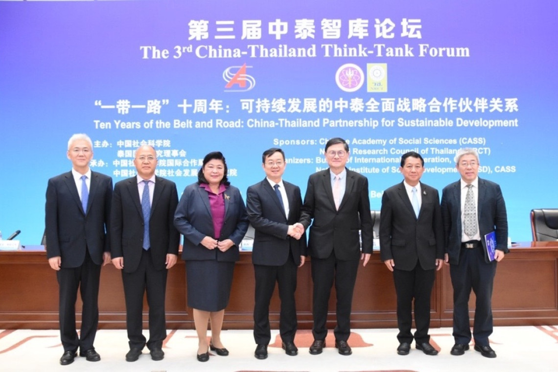 ทั้งนี้ สถาบันสังคมศาสตร์จีน (Chinese Academy of Social Sciences: CASS) และสำนักงานการวิจัยแห่งชาติ (วช.) ได้มีความร่วมมือทางวิชาการต่อเนื่องมามากแล้วกว่า 23 ปี โดยได้จัดกิจกรรมส่งเสริมการวิจัยในประเด็นสำคัญและเป็นข้อเสนอเพื่อการพัฒนาเศรษฐกิจ และสังคม โดยมีผู้บริหารนำวิจัยและนวัตกรรมจากจีนและไทยเข้าร่วมการประชุมอย่างต่อเนื่อง ตลอดทุกปี พร้อมกันนี้ได้มีการแลกเปลี่ยนนักวิจัยและเสนอประเด็นเพื่อจัดทำการศึกษาร่วมกัน พร้อมกับกิจกรรมความร่วมมือมาโดยลำดับ และในปี 2566 นี้ จะได้เกิดความร่วมมือสำคัญระหว่างสำนักงานการวิจัยแห่งชาติและสถาบันสังคมศาสตร์จีน (Chinese Academy of Social Sciences: CASS) ในการร่วมจัดตั้ง “ศูนย์วิจัยจีน สำนักงานการวิจัยแห่งชาติ สถาบันสังคมศาสตร์จีน” ณ สำนักงานการวิจัยแห่งชาติ อีกด้วย