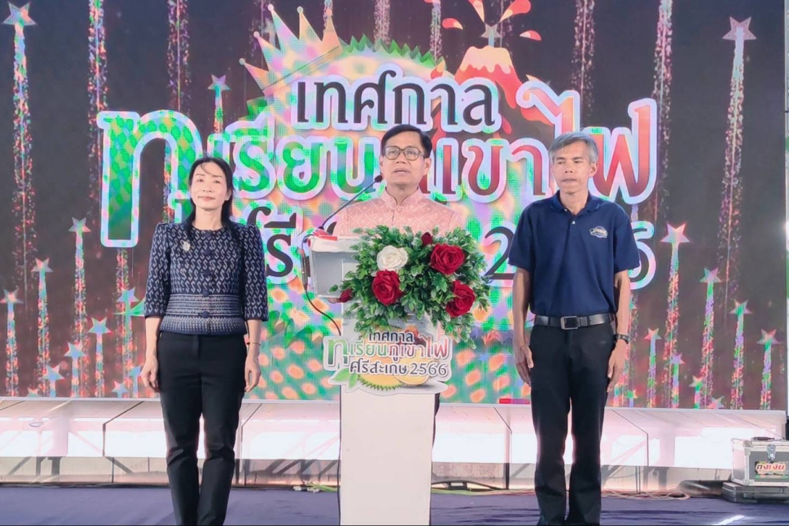 เมื่อวันที่ 2 ก.ค. 66 ผู้สื่อข่าวรายงานว่า ที่สนามหน้าศาลากลาง จ.ศรีสะเกษ อ.เมือง จ.ศรีสะเกษ นายสำรวย เกษกุล ผวจ.ศรีสะเกษ กล่าวถึงผลการจัดงาน “เทศกาลทุเรียนภูเขาไฟศรีสะเกษ ปี 2566” ระหว่างวันที่ 23 มิ.ย. - วันที่ 2 ก.ค.2566 ณ สนามหน้าศาลากลาง จ.ศรีสะเกษ เพื่อประชาสัมพันธ์ทุเรียนภูเขาไฟศรีสะเกษ และผลิตภัณฑ์ทางการเกษตรที่มีคุณภาพ เป็นการเพิ่มช่องทางการตลาด และส่งเสริมการท่องเที่ยวของจังหวัดศรีสะเกษ ให้เป็นที่รู้จักอย่างแพร่หลาย โดยมี นายวิชัย ศรีโพธิ์งาม เกษตร จ.ศรีสะเกษ เป็นผู้กล่าวรายงาน