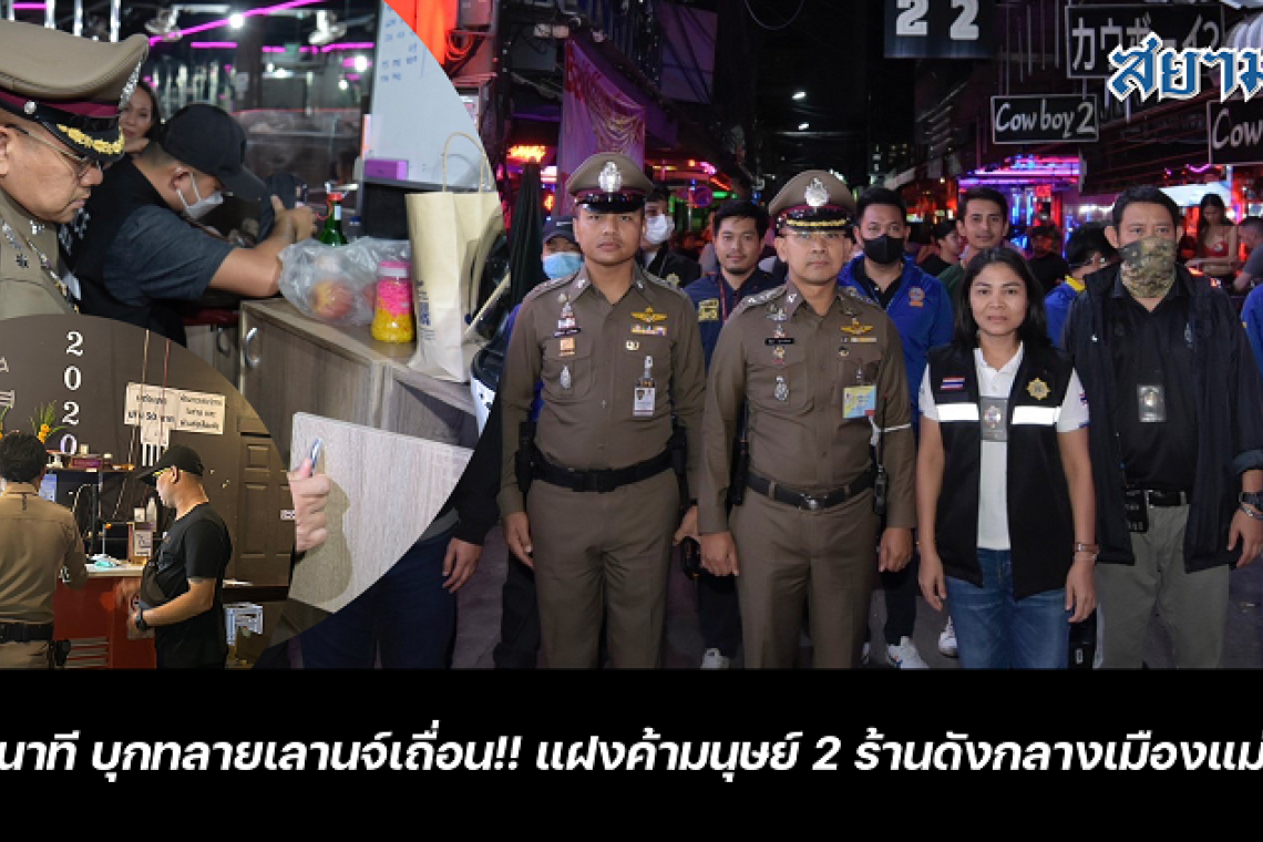 กรมการปกครอง ร่วมกับฝ่ายปกครองจังหวัดเชียงราย สำนักงาน ปปส.ภาค 5 และสำนักงานพัฒนาสังคมและความมั่นคงของมนุษย์จังหวัดเชียงราย บุกทลายเลานจ์เถื่อน อัพยา แฝงค้ามนุษย์ 2 ร้านดังกลางเมืองแม่สาย เปิดยัน 6 โมงเช้า ไร้ใบอนุญาต