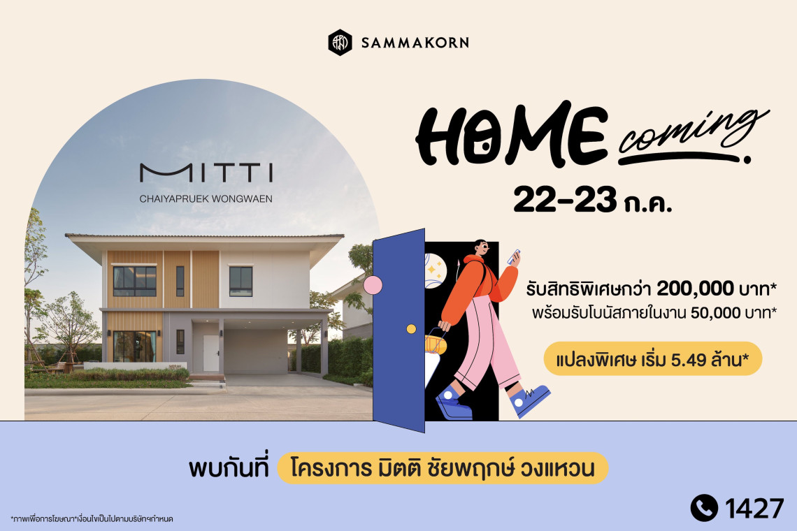 บริษัท สัมมากร จำกัด (มหาชน) หรือ SAMCO ผู้พัฒนาอสังหาริมทรัพย์ที่สร้างสรรค์โครงการระดับคุณภาพ มาเป็นระยะเวลา 53 ปี จัดงาน Home Coming: The New Home Journey (อ้าแขนรับการเดินทางสู่บ้านหลังใหม่) ชวนทุกท่านร่วมเปิดประสบการณ์ และค้นหานิยามของคำว่า “บ้าน” พร้อมการเดินทางสู่บ้านหลังใหม่ที่ มิตติ ชัยพฤกษ์ วงแหวน ระหว่างวันเสาร์ที่ 22 – วันอาทิตย์ที่ 23 กรกฎาคม 2566