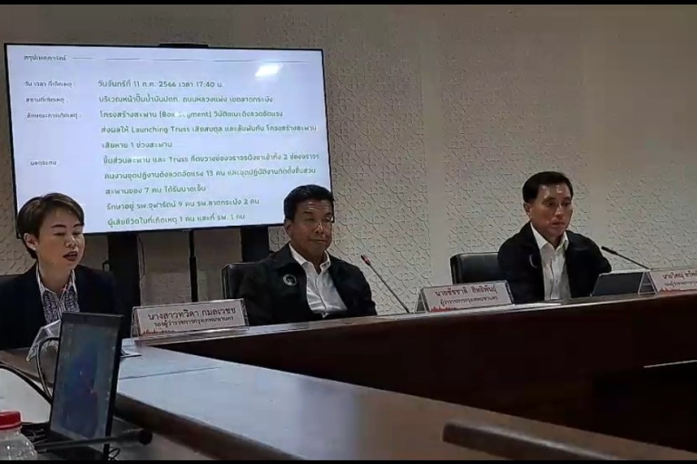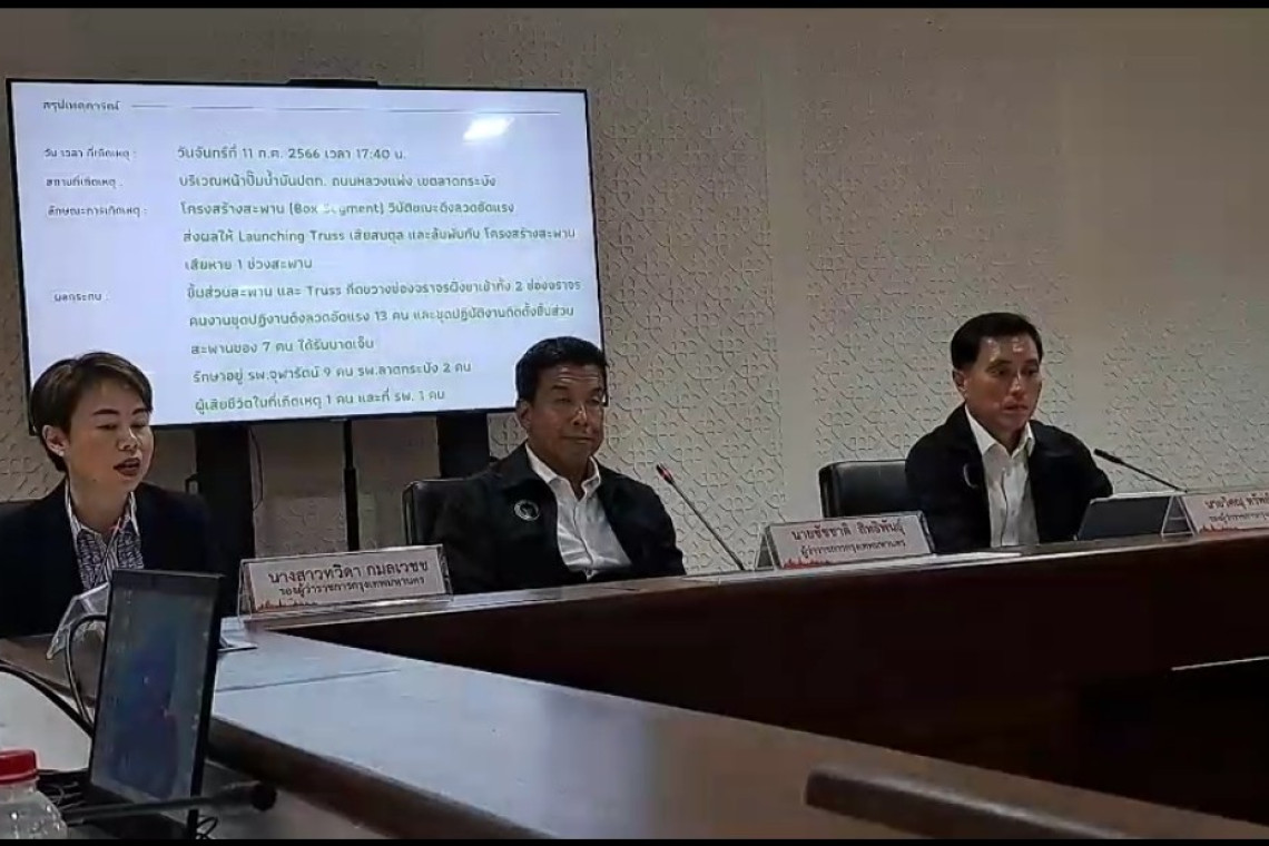 นายชัชชาติ สิทธิพันธ์ ผู้ว่าราชการกรุงเทพมหานคร พร้อมด้วยทีมรองผู้ว่าราชการกรุงเทพมหานครและสำนักการโยธา กรุงเทพมหานคร ร่วมกันแถลงความคืบหน้าโครงการก่อสร้างทางยกระดับอ่อนนุช-ลาดกระบัง ถนนหลวงแพ่ง เขตลาดกระบัง กรุงเทพฯ เกิดเหตุพังถล่มขณะกำลังก่อสร้าง ส่งผลให้มีผู้เสียชีวิต2 ราย คือวิศวะกรที่คุมงานก่อสร้างและคนงาน และบาดเจ็บ 12 ราย เบื้องต้นจากการตรวจสอบสาเหตุสันนิษฐานว่าเกิดจากตัวโครงสร้างสะพาน (Box Segment] พังลงขณะดึงลวดอัดแรงส่งผลให้ Launching Truss เสียสมดุล และล้มพับทับ โครงสร้างสะพานบริเวณเสาที่ 83 และ 84 เสียหาย 1 ช่วงสะพาน พร้อมปฎิเสธว่ากทม.ไม่ได้เป็นคนสั่งให้มีการเปลี่ยนแปลงแบบในการก่อสร้าง แต่ทางผู้รับเหมาได้แจ้งขอเปลี่ยนรูปแบบการก่อสร้าง เมื่อเดือน ต.ค.ที่ผ่านมา เพื่อให้การก่อสร้างเร็วขึ้น จากแบบเดิมการหล่อตัว Box Segment ทำในพื้นที่ แต่ขอเปลี่ยนแบบ Box Segmentแบบสำเร็จ