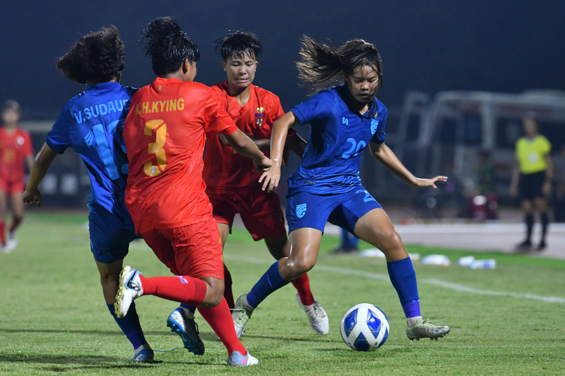 วันที่ 10 กรกฎาคม 2566 ณ แอธเลติก ฟิลด์ เมือง ปาเล็มบัง ประเทศอินโดนีเซีย การแข่งขันฟุตบอลชิงแชมป์อาเซียน รุ่นอายุไม่เกิน 19 ปี รอบแบ่งกลุ่ม กลุ่มซี นัดที่สอง ฟุตบอลหญิงทีมชาติไทย U19 พบกับ เมียนมา