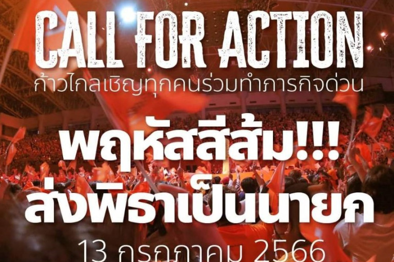 เมื่อวันที่ 12 ก.ค.66 ผู้สื่อข่าวรายงานว่า เพจเฟซบุ๊ก พรรคก้าวไกล โพสต์ข้อความระบุว่า ก้าวไกลขอเชิญทุกคนร่วมทำภารกิจด่วน! "พฤหัสสีส้ม" เชิญชวนทุกคนร่วมใส่เสื้อผ้าสีส้ม ติดสัญลักษณ์ ร่วมสื่อสารทั้งในโลกออนไลน์และออฟไลน์ เพื่อสนับสนุนให้รัฐสภาลงมติโหวต พิธา ลิ้มเจริญรัตน์ เป็นนายกรัฐมนตรีคนที่ 30 ของประเทศไทย ให้สำเร็จ