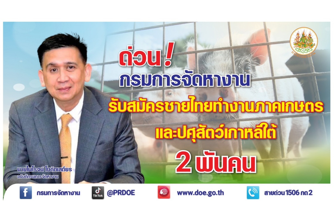นายไพโรจน์ โชติกเสถียร อธิบดีกรมการจัดหางาน เปิดเผยว่า กรมการจัดหางานเปิดรับสมัครทดสอบภาษาเกาหลีและทักษะการทำงาน (Point System) ครั้งที่ 13 เพื่อสมัครไปทำงานสาธารณรัฐเกาหลีตามระบบการจ้างแรงงานต่างชาติ (EPS) โดยในรอบนี้ได้รับโควตาผู้สอบผ่านประเภทงานเกษตร/ปศุสัตว์ เพศชาย จำนวน 2,513 อัตรา ซึ่งภายหลังจากดำเนินการทดสอบเสร็จสิ้น จะประกาศรายชื่อผู้ที่มีคะแนนรวมสูงสุดลงมาจนครบจำนวนที่กำหนดตามโควตา และผู้มีรายชื่อตามประกาศดังกล่าวจะมีสิทธิยื่นใบสมัครไปทำงานสาธารณรัฐเกาหลีตามระบบฯ พร้อมขึ้นทะเบียนไว้ 2 ปี นับแต่วันประกาศผลการทดสอบ สมัครได้ตั้งแต่บัดนี้ถึง 14 ก.ค. 66 ไม่เว้นวันหยุดราชการ
