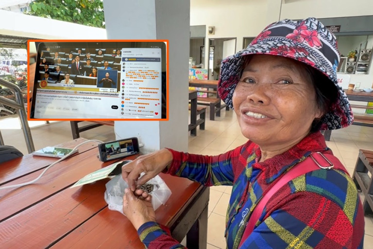 เมื่อเวลา 14.00 น. วันที่ 13 ก.ค.66 ที่ สภ.เมืองขอนแก่น ผู้สื่อข่าวได้พบกับ นางบัวฮอง ทิพย์ฤๅตรี อายุ 67 ปี แม่ค้าสลากกินแบ่งรัฐบาล กำลังเปิดชมการถ่ายทอดสด ประชุมรัฐสภา เพื่อโหวตนายกรัฐมนตรีคนที่ 30 ของประเทศไทย ผ่านทางโทรศัพท์มือถือ และเปิดแผงเอาไว้เผื่อจะมีลูกค้าภายในโรงพักมาสนใจมาซื้อ