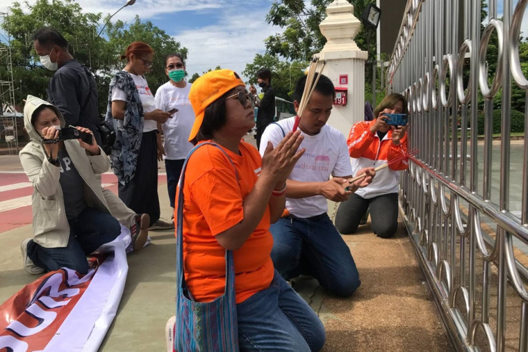 แต่ก็ใช่จะเป็นสิ่งที่ขัดขวางการกราบไหว้บูชาในครั้งนี้ได้ ทางสมาชิกและกลุ่มก้าวไกลได้จุดธูป 9 ดอก ด้านนอกประตูที่ถูกล็อคปิดกันเอาไว้พร้อมกล่าวคำต่อหน้าสิ่งศักสิทธิ์ ระบุว่า...“ให้บ้านเมืองนี้ผ่านพ้นไปได้ ขอให้การโหวตพิธา เป็นไปได้ด้วยดี สำหรับใครที่ทำงานไม่ตรงไปตรงมา กลั่นแกล้งประชาชน ขอให้มันฉิบหาย ครอบครัวเดือดร้อน เจ็บป่วยเป็นมะเร็ง เป็นไส้เลื่อน รักษาไม่หาย เสื่อมสมรรถภาพทางเพศ เมียมีชู้ ซื้อหวยไม่ถูก ใครที่ทำงานซื่อตรงสุจริต ขอให้ถูกหวยรางวัลที่ 1 ทุกงวด”