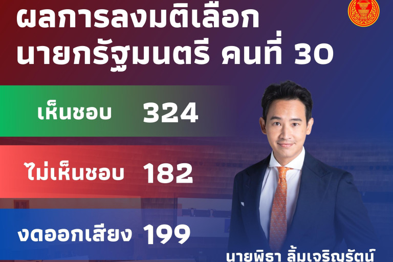 วันที่ 13 ก.ค.2566 ที่รัฐสภา มีการประชุมร่วมกันของรัฐสภา ที่มีนายวันมูหะมัดนอร์ มะทา ประธานรัฐสภา เพื่อเลือกนายกฯ ทำหน้าส่วนผลการลงคะแนนโหวตนายกฯ ภายหลังจากขานคะแนนเสร็จสิ้น โดยนายวันมูหะมัดนอร์ ประกาศผลลงคะแนน ปรากฏว่า นายพิธาได้คะแนนเห็นชอบ324 เสียง ไม่เห็นชอบ 182 เสียง งดออกเสียง 199 เสียง เป็นอันว่านายพิธาได้รับคะแนนเห็นชอบไม่มากกว่ากึ่งหนึ่งของจำนวนสมาชิกที่มีอยู่ของทั้งสองสภา ถือว่า มติที่ประชุมไม่เห็นชอบการแต่งตั้งนายพิธาเป็นนายกฯตามรัฐธรรมนูญ มาตรา272 วรรค1 ก่อนที่จะสั่งปิดประชุมในเวลา 18.25น.