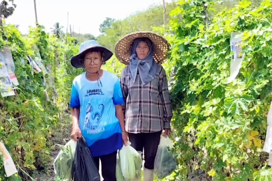 นายวินัย และนางพิน วิฑูรนกร สองสามีภรรยา บ้านชายควน หมู่ 4 ต.ทุ่งหวัง อ.เมือง จ.สงขลา ช่วยกันเก็บผลผลิตผักกว่า 5 ชนิด ที่ปลูกไว้ในพื้นที่เพียงครึ่งไร่ หมุนเวียนกันไป เพื่อบริโภคในครัวเรือนเหลือจำหน่ายสร้างรายได้ให้กับครอบครัว