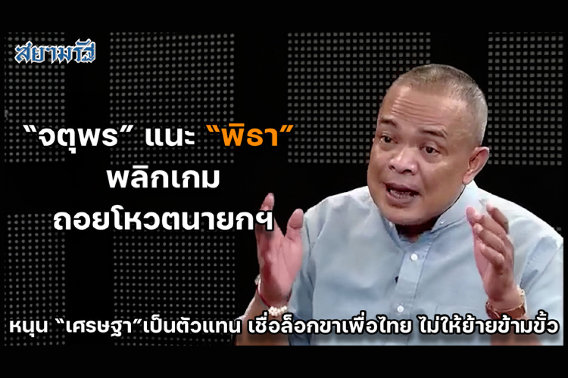 นาย จตุพร พรหมพันธ์ แกนนำคณะหลอมรวมประชาชน กล่าวในรายการ ประเทศไทยต้องมาก่อน เมื่อวันที่ 16 ก.ค.66 ตอน "พลิก?" โดยเสนอใก้นายพิธา ลิ้มเจริญรัตน์ พลิกเกมด้วยการประกาศถอนตัวจากแคนดิเดตนายกฯ กลางสภาในวันที่ 19 ก.ค.นี้ พร้อมเสนอให้นายเศรษฐา ทวีสิน เป็นแคนดิเดตนายกฯ ของฝ่าย 312 เสียงแทน ซึ่งมั่นใจว่า เป็นการพลิกชิงมัดขาพรรคเพื่อไทยไม่ให้ย้ายข้ามขั้ว