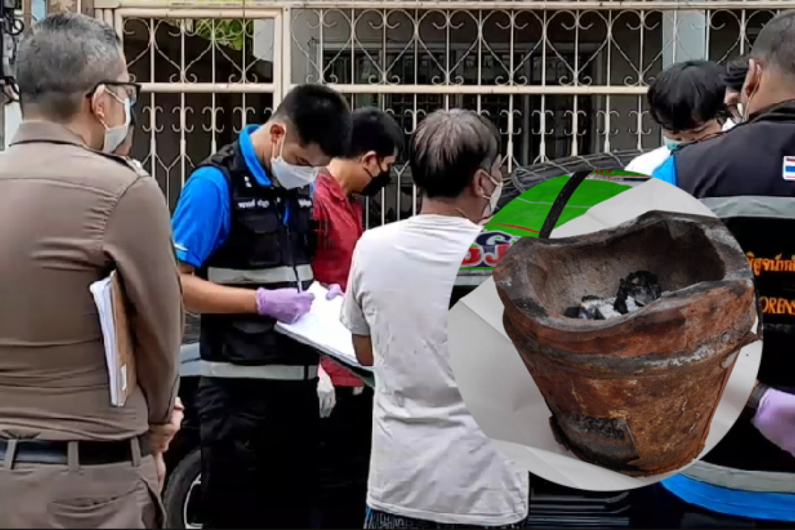 ที่เกิดเหตุ พบรถเก๋งยี่ห้อเชฟโรเลต รุ่นอาวีโอ สีดำ ทะเบียน ญก 120 กรุงเทพมหานคร จอดอยู่หน้าบ้านหลังดังกล่าว ภายในรถบริเวณเบาะที่นั่งคนขับ พบศพ หญิง อายุ 54 ปี อาชีพขายหมูปิ้ง เสียชีวิตอยู่ ในลักษณะเบาะปรับเอนนอน สวมเสื้อยืดแขนสั้นลายดอกสีแดงนุ่งกางเกงขาสั้นสีน้ำเงิน และพบเตาอั้งโล่ ถูกจุดจนมอดแล้ว วางอยู่ที่พื้นรถฝั่งด้านข้างคนขับ เจ้าหน้าที่จึงเก็บรวบรวมรายละเอียดที่พบไว้เป็นหลักฐาน