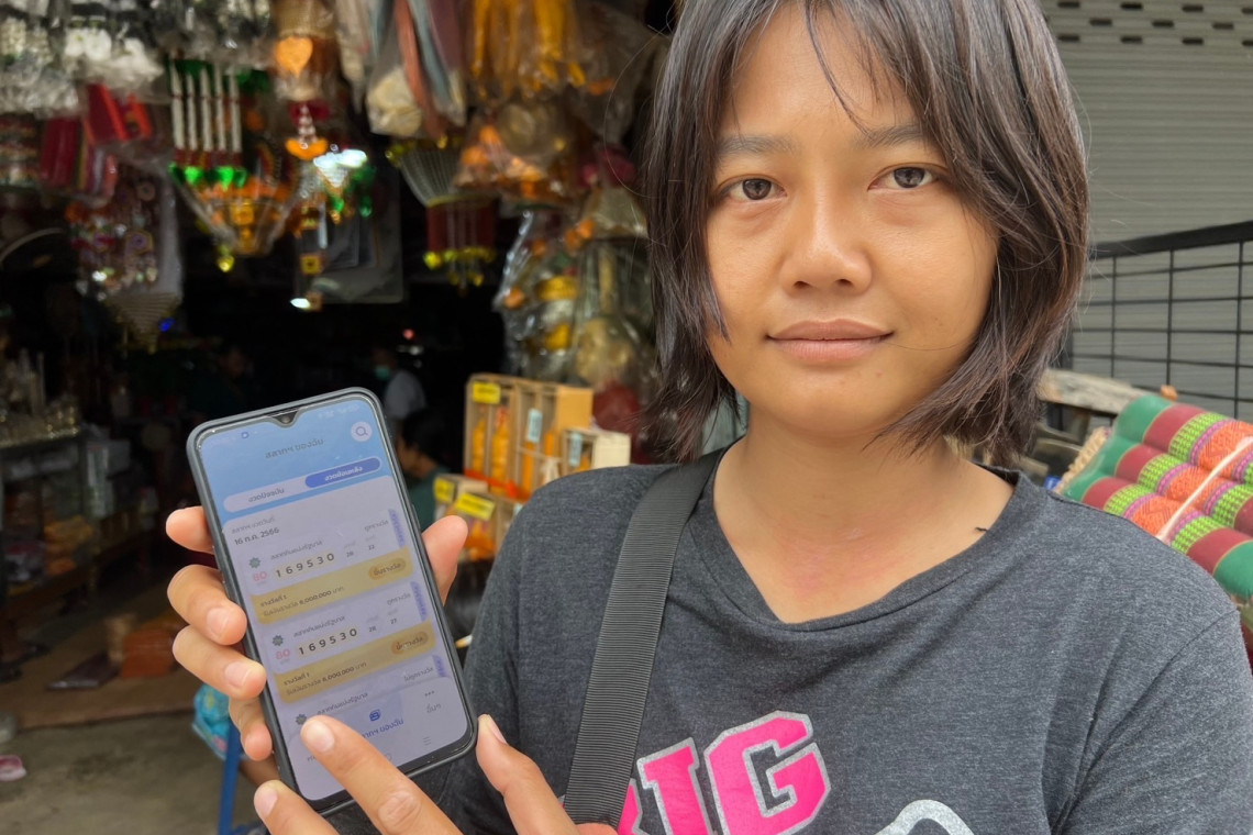 เมื่อไปถึงบริเวณร้านจำหน่ายเครื่องสังฆภัณฑ์ ได้พบกับ น.ส.ดวงใจ แหวนหล่อ สาวผู้โชคดี กับ นายวาด แหวนหล่อ อายุ 61 ปี ซึ่งเป็นพ่อและญาติพี่น้องกำลังเลือกซื้อเครื่องสังฆภัณฑ์ ซึ่ง น.ส.ดวงใจ ได้นำเอาสลากกินแบ่งรัฐบาลที่ถูกรางวัลที่ 1 ในแอ๊ปกระเป๋าตังค์เป็นสลากกินแบ่งรัฐบาล ประจำวันที่ 16 ก.ค. 2566 งวดที่ 28 ชุดที่ 22 กับชุดที่ 27 หมายเลข 169530 จำนวน 2 ชุด มาให้ผู้สื่อข่าวได้ตรวจสอบ พบว่า เป็นสลากกินแบ่งรัฐบาลที่ถูกรางวัลที่ 1 ประจำงวดวันที่ 16 ก.ค. 66 โดย น.ส.ดวงใจจะได้รับเงินรางวัลจำนวนทั้งสิ้น 12 ล้านบาท แต่ว่า ยังไม่ได้ไปรับเงินรางวัลแต่อย่างใด เนื่องจากว่ายังติดทำบุญให้กับคุณยายสี อยู่ยังยังไม่เสร็จพิธีศพแต่อย่างใด