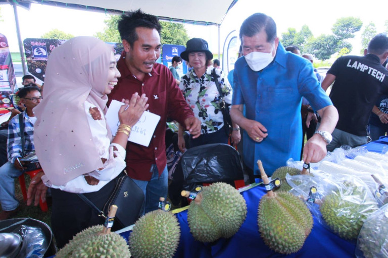 วันหนึ่งเราเห็นว่าพืชทุเรียนเป็นพืชที่มีโอกาสทางเศรษฐกิจตัวใหม่ของประเทศไทย ขณะนี้เราส่งทุเรียนไปจำหน่ายต่างประเทศ เฉพาะประเทศจีนประเทศเดียวปีที่แล้วแสนกว่าล้าน นั่นคือคนจีนยังทานทุเรียนไม่ถึง 10% ของพลเมืองประเทศจีน ประเทศจีนมีประชากรประมาณ 1400 ล้านคน ขณะที่คน ทานทุเรียนยังไม่ถึง 100 ล้าน ซึ่งผมได้มีโอกาสไปพบกับผู้ใหญ่ที่ดูแลธุรกิจในประเทศไทยคือท่านธนินทร์ เจียรวานนท์ ท่านเจ้าสัวซีพี ให้ข้อมูลกับผมว่าพื้นที่ในจังหวัดชายแดนภาคใต้ตั้งแต่สงขลาลงไป เป็นพื้นที่ ที่เหมาะกับการปลูกทุเรียน ซึ่งทุเรียนเป็นพืชที่ชอบน้ำแต่ไม่ชอบน้ำขัง แต่พืชทุเรียนขาดน้ำไม่ได้ ซึ่งธุรกิจทุเรียนถือเป็นธุกิจแสนล้านหรือสองแสนล้านได้ในอนาคต แต่จุดอ่อนของบ้านเราท่านบอกว่า ที่ผ่านมาเราไม่สามารถแก้ปัญหาในเรื่องตัวหนอนในเมล็ดทุเรียนได้ ท่านจึงส่งเจ้าหน้าที่ของซีพีมากับมูลนิธิปิดทองหลังพระ ลงมาเพื่อแก้ปัญหาในพื้นที่จังหวัดยะลา เพื่อปิดจุดอ่อนในเรื่องของปัญหาตัวหนอนในเมล็ดได้ แล้วทำให้จังหวัดยะลา เป็นฮับทุเรียน