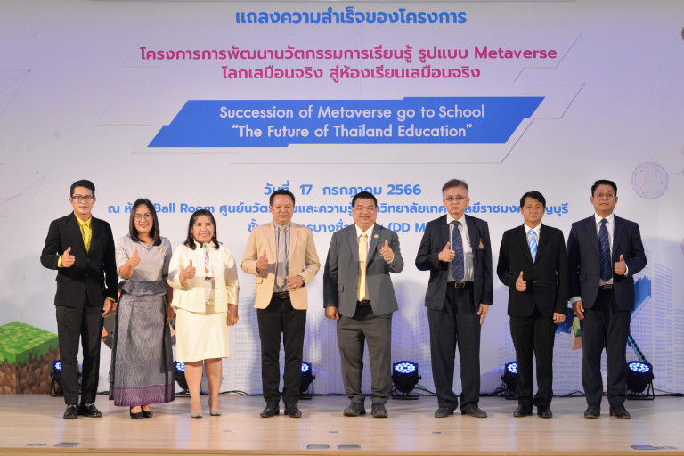 เมื่อวันที่ 17 ก.ค.66 สำนักพัฒนานวัตกรรมการจัดการศึกษา สพฐ. จับมือกับ มทร.ธัญบุรี แถลงความสำเร็จโครงการ “การพัฒนานวัตกรรมการเรียนรู้รูปแบบ Metaverse โลกเสมือนจริง สู่ห้องเรียนเสมือนจริง” พัฒนาครูทั่วประเทศกว่า 15,000 ราย ด้วยเทคโนโลยีเมตาเวิร์ส ย้ำชัดเป็นการเสริมแกร่งด้านเทคโนโลยีแก่ข้าราชการครูและบุคลากรทางการศึกษาใน 5 ภูมิภาคทั่วประเทศ ด้วยนวัตกรรมแห่งอนาคตการศึกษาไทย ณ ศูนย์นวัตกรรมและความรู้ มทร.ธัญบุรี ดีดีมอลล์ จตุจักร