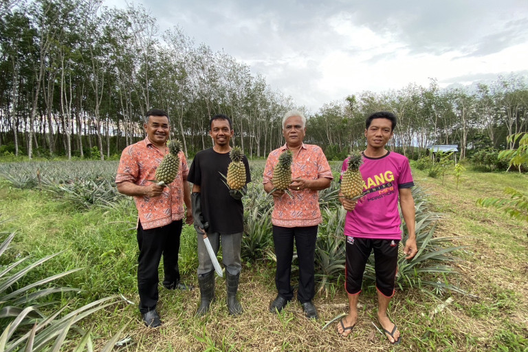 จากสภาพปัญหาราคาผลผลิตยางพาราในปัจจุบันที่ตกต่ำผนวกกับปัจจัยการผลิตมีราคาสูง จึงได้ปรับเปลี่ยนจากพื้นที่ปลูกยางพาราเดิมเป็นแปลงสับปะรด โดยเริ่มจากการปลูกแซมภายในแปลงยางพาราที่อายุไม่เกิน 3 ปี ซึ่งการปลูกแซมในแปลงยางพารานั้น ไม่ส่งผลกระทบต่อการเจริญเติบโตของยางพาราแต่ตรงกันข้ามการปลูกสับปะรดในแปลงทำให้การเจริญเติบโตของต้นยางพาราดีขึ้น เนื่องจากยางพาราได้รับธาตุอาหารจากปุ๋ยที่ใส่ให้กับสับปะรด เมื่อไหร่ที่ต้องปลูกยางพาราใหม่ก็จะใช้สับปะรดเป็นพืชแซมในสวนยาง เสริมด้วยไม้ผลบริเวณรอบแปลง และแบ่งพื้นที่ไว้บางส่วนในการขุดสระเก็บน้ำไว้ใช้ในการเพาะปลูกในฤดูแล้ง และใช้วิธีการทางธรรมชาติโดยการเลี้ยงผึ้งโพรงเพื่อช่วยในการผสมเกสรเพิ่มโอกาสในการติดผล