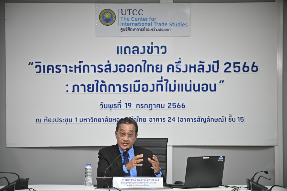 นายอัทธ์ พิศาลวานิช ผู้อำนวยการศูนย์ศึกษาการค้าระหว่างประเทศ มหาวิทยาลัยหอการค้าไทย เปิดเผยถึงผลวิเคราะห์ส่งออกไทยครึ่งหลังปี 2566: ภายใต้การเมืองที่ไม่แน่นอนว่า ศูนย์ศึกษาการค้าระหว่างประเทศ มหาวิทยาลัยหอการค้าไทย ได้ทำการวิเคราะห์ทิศทางการส่งออกไทยทั้งปี 2566 และครึ่งหลังของปี 2566 ภายใต้ปัจจัยเสี่ยง และปัจจัยที่ต้องติดตามต่างๆ โดยผลการวิเคราะห์แบ่งเป็น 2 กรณีดังนี้ 1) กรณีที่มีการจัดตั้งรัฐบาลใหม่ภายในเดือนสิงหาคม 2566 คาดว่ามูลค่าการส่งออกของไทยไปตลาดโลกในปี 2566 จะมีมูลค่าเท่ากับ 283,738 ล้านดอลลาร์สหรัฐฯ (โดยมีช่วงคาดการณ์อยู่ระหว่าง 282,038 ถึง 289,422 ล้านดอลลาร์สหรัฐฯ) หรือหดตัว -1.2 % (โดยมีช่วงคาดการณ์อยู่ระหว่าง -1.8% ถึง 0.8%) สำหรับครึ่งหลังของปี 2566 คาดว่าจะมีมูลค่าเท่ากับ 142,244 ล้านดอลลาร์สหรัฐฯ (โดยมีช่วงคาดการณ์อยู่ระหว่าง 140,545 ถึง 147,928 ล้านดอลลาร์สหรัฐฯ) หรือขยายตัว 3.1% (โดยมีช่วงคาดการณ์อยู่ระหว่าง 1.9% ถึง 7.2%)