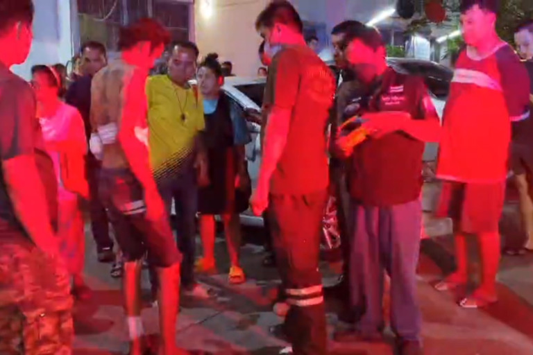 นางสมเพชร อายุ54 ปี เล่าว่า ได้ยินเสียงเอะอะโวยวาย คล้ายวัยรุ่นมีเรื่องกัน จึงวิ่งออกมาห้ามเขา ไม่รู้ใครเป็นใคร ลูกชายบอกให้ตนถอยออกมา พอถอยออกมาก็ตีกันอีก หันมาเจอน้องชาย(เล็ก)โดนฟัน นั่งหลบอยู่ เสื้อดำวิ่งถือดาบออกมา ตนเลยห้ามไว้ แต่ไม่ฟังวิ่งมาฟันน้องชาย(เล็ก) และหันมาฟันตนด้วย แต่ไม่เข้า