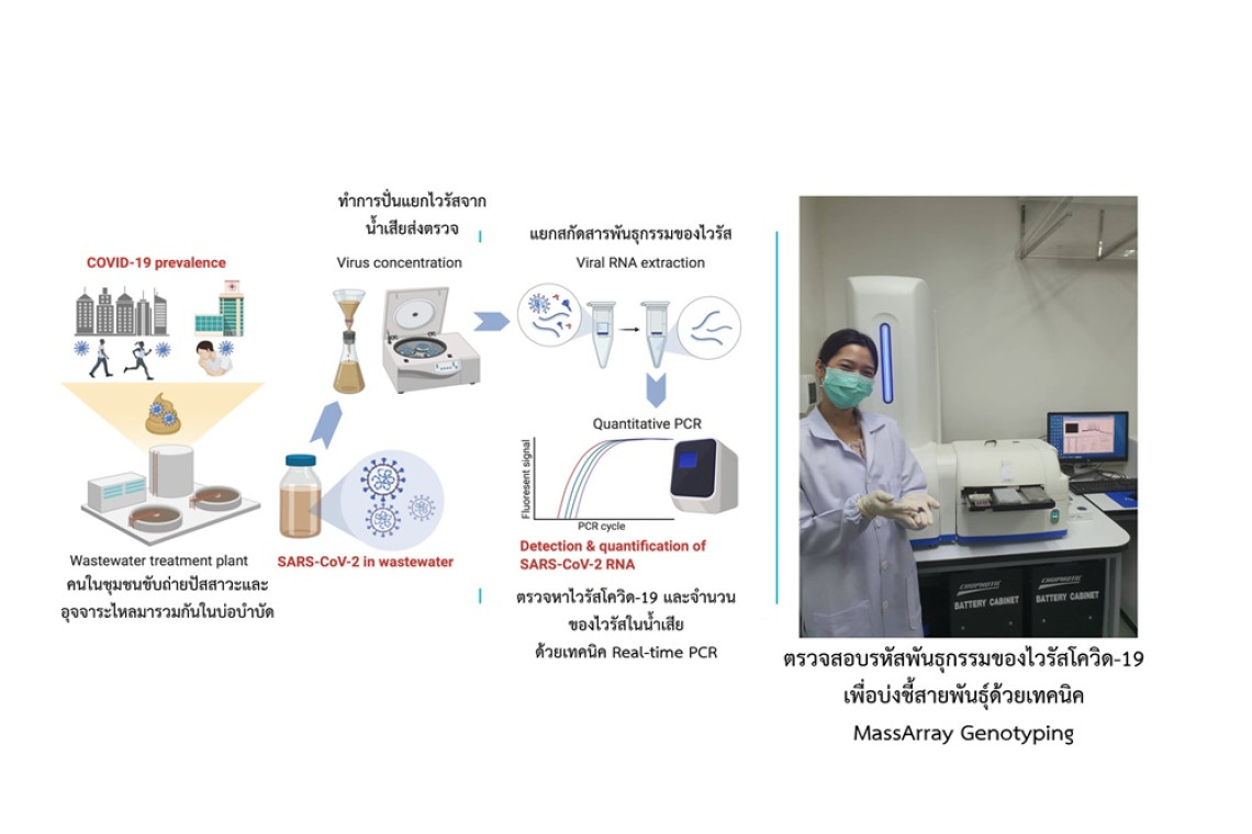 ศูนย์จีโนมทางการแพทย์ และสำนักวิจัยโรงพยาบาลรามาธิบดี เป็นอีกตัวอย่างหนึ่งของการดำเนินการโครงการนำร่องการเฝ้าระวังโควิด-19 จากน้ำเสียที่สถาบันการแพทย์จักรีนฤบดินทร์ ที่ประสบความสำเร็จ ด้วยตระหนักถึงศักยภาพของระบาดวิทยาจากน้ำเสีย สำนักวิจัยฯ ได้เก็บตัวอย่างน้ำเสียจากสถาบันการแพทย์จักรีนฤบดินทร์ มาตรวจ Real-time PCR ตัวอย่างที่ให้ผลเป็นบวก ถูกส่งมาตรวจรหัสพันธุกรรมด้วยเทคนิค MassArray Genotyping ที่ศูนย์จีโนมฯ เพื่อติดตามแนวโน้มของโควิด-19 สายพันธุ์ต่างๆที่ไหลเวียนและการแพร่กระจายอยู่ในชุมชนนั้น เพื่อสามารถวางแผนรับมือ และดำเนินการตามเป้าหมายเพื่อควบคุมการแพร่กระจายของไวรัส การควบรวมการเฝ้าระวังจีโนมิกส์ของโควิดเข้ากับการเฝ้าระวังน้ำเสียในประเทศไทยจะทำให้ได้ข้อมูลที่มีค่าเกี่ยวกับความชุกของไวรัสสายพันธุ์ต่างๆ ซึ่งเป็นข้อมูลที่ช่วยสนับสนุนความพยายามของประเทศในการติดตามและจัดการภูมิทัศน์ทางระบาดวิทยาที่เปลี่ยนแปลงไป เพื่อการป้องกัน และรักษา ประชากรไทย ซึ่งดำเนินการได้ดีในระดับหนึ่ง สังเกตจากข้อมูลจากองค์การอนามัยโลก เมื่อวันที่ 20/7/2566