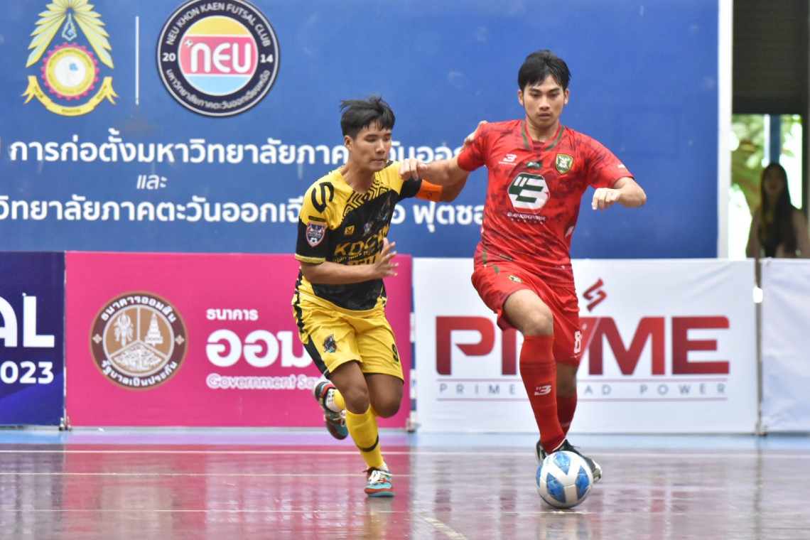 การแข่งขันฟุตซอลไทยลีก 2023 นัดที่ 13 เกมสุดท้ายของเลกแรก ประจำวันเสาร์ที่ 22 ก.ค.66 ที่ยิมเนเซี่ยม มหาวิทยาลัยภาคตะวันออกเฉียงเหนือ "เดอะทีเร็กซ์แดนอีสาน" มอภาคตะวันออกเฉียงเหนือ ทีมอันดับสุดท้ายของตาราง ลงสนาม 12 นัด ยังไม่มีคะแนน เปิดบ้านรับการมาเยือน "ไอ้หนุ่มเมืองเพชร" ราชภัฎเพชรบุรี อันดับ 6 มี 17 คะแนน จาก 12 นัด