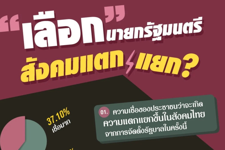 เมื่อวันที่ 23 ก.ค.66 ศูนย์สำรวจความคิดเห็น “นิด้าโพล” สถาบันบัณฑิตพัฒนบริหารศาสตร์ (นิด้า) เปิดเผยผลสำรวจของประชาชน เรื่อง “เลือกนายกรัฐมนตรี สังคมแตกแยก?” ทำการสำรวจระหว่างวันที่ 11-12 กรกฎาคม 2566 จากประชาชนที่มีอายุ 18 ปีขึ้นไป กระจายทุกภูมิภาค ระดับการศึกษา อาชีพและรายได้ทั่วประเทศ รวมทั้งสิ้น จำนวน 1,310 หน่วยตัวอย่าง เกี่ยวกับการเลือกนายกรัฐมนตรีทำให้เกิดความแตกแยกในสังคมไทย หรือไม่ การสำรวจอาศัยการสุ่มตัวอย่างโดยใช้ความน่าจะเป็นจากบัญชีรายชื่อฐานข้อมูลตัวอย่างหลัก (Master Sample) ของ “นิด้าโพล” สุ่มตัวอย่างด้วยวิธีแบบง่าย (Simple Random Sampling) เก็บข้อมูลด้วยวิธีการสัมภาษณ์ทางโทรศัพท์ โดยกำหนดค่าความเชื่อมั่น ร้อยละ 97.0