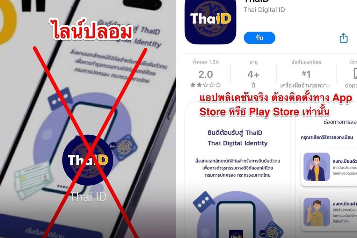2.ตรวจก่อนว่ามาจากหน่วยงานนั้นๆ จริงหรือไม่ โดยการโทรศัพท์ไปสอบถามผ่านหมายเลขคอลเซ็นเตอร์ของกรมการปกครอง ที่หมายเลข 1548 และสามารถติดตั้งแอปพลิเคชัน ThaID จริงได้ที่ https://www.bora.dopa.go.th/app-thaid เท่านั้น