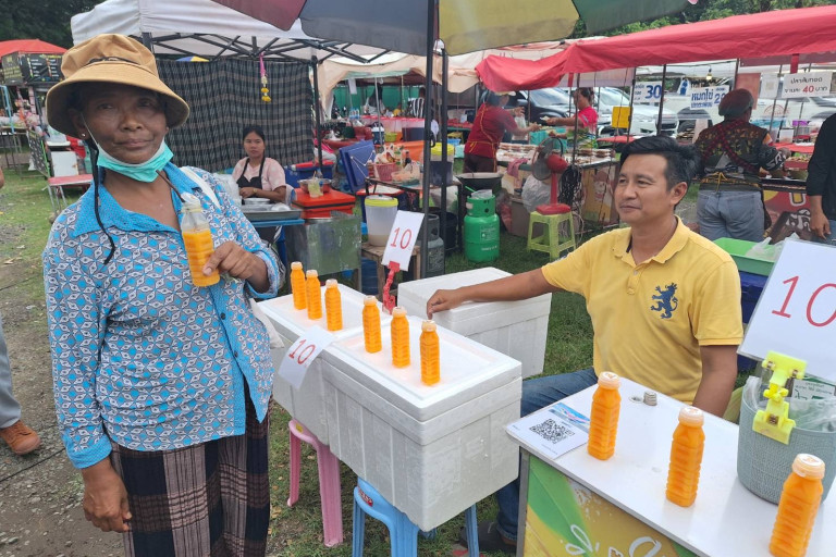 นางสำเนียง นพคุณ อายุ 61 ปี อยู่เลขที่ 28 หมู่ 13 ต.ชุมเห็ด อ. เมือง บุรีรัมย์ บอกว่า ปกติ จะชอบกินน้ำส้มคั้น แต่ไม่มีโอกาสเพราะร้านขายมีน้อย หลังจากลูกสาวบอกสถานที่ขายจึงคิดอยากจะดื่มในทันที ยอมรับว่ากระแสลิซ่าที่จังหวัดบุรีรัมย์มาแรง