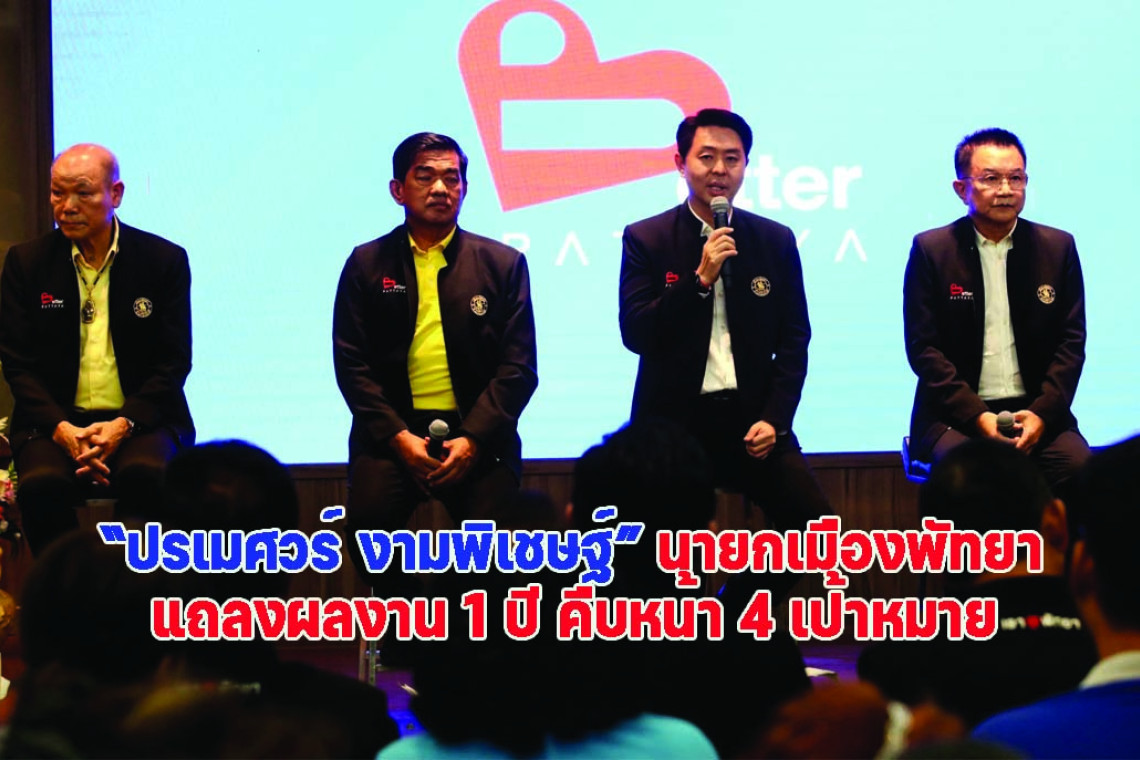 นายปรเมศวร์ งามพิเชษฐ์ นายกเมืองพัทยา นายวุฒิศักดิ์ เริ่มกิจการ นายมาโนช หนองใหญ่ และนางสาวทิฐิพันธ์ เพ็ชรตระกูล รองนายกเมืองพัทยา นำทีมคณะผู้บริหารเมืองพัทยา ร่วมกันแถลงผลงานการปฏิบัติงานของผู้บริหารเมืองพัทยาครบ 1 ปี พร้อมด้วยหัวหน้าส่วนราชการเมืองพัทยา หน่วยงานภาครัฐ เอกชน ประชาชน สภานักเรียนเมืองพัทยา และคณะสื่อมวลชนเข้าร่วม