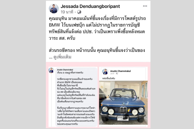 "อนุทิน" แจงรถซีตรองของ ลูกชาย ขณะที่ BMW เพิ่งซื้อตอบ อ.เจษฎา หลังสงสัยไม่แจ้งทรัพสินย์ ป.ป.ช.สอนมวย หาข้อมูลให้ชัด ก่อนกล่าวหา ขณะที่นักวิชาการน้อมรับไปแก้ไขข่าว