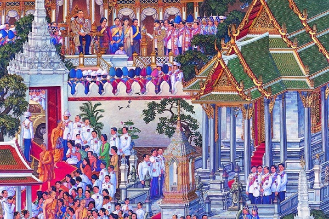 แนวพระราชดำริโปรดให้เขียนภาพตามสภาพความเป็นจริงและเหตุการณ์ทางประวัติศาสตร์ในแต่ละสมัย ดำเนินเรื่องเหตุการณ์ในรัชกาลที่ 4 และในรัชกาลลำดับต่อๆ มา จนมาถึง “ในหลวง รัชกาลที่ 9” เสด็จดำรงสิริราชสมบัติ ทรงประกอบพระราชพิธีบรมราชาภิเษก ทรงฟื้นฟูราชประเพณีต่างๆ แล้ว ในเรื่องการแต่งกาย บุคคลสำคัญ ฯลฯ โดยให้ช่างศิลป์ไปศึกษาค้นคว้าข้อมูลจากเหตุการณ์จริง เครื่องใช้ไม้สอยและสิ่งของจริงก่อนลงมือวาด รวมไปถึงการจัดวางองค์ประกอบศิลป์ ในการใช้เทคนิควิทยาการปัจจุบัน การใช้สี การตัดเส้น ปิดทอง ลงแสงเงาในเนื้อทองตัดเส้นด้วยสีเข้ม ทำให้ภาพเขียนมีความแวววาวเปล่งประกายและสวยงามยิ่ง