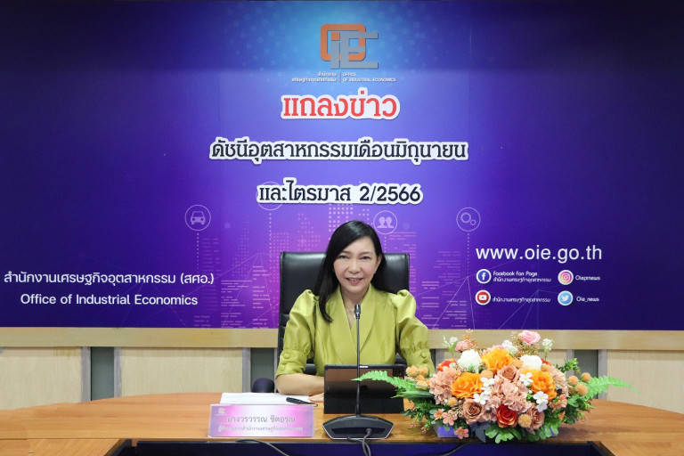 นางวรวรรณ ชิตอรุณ ผู้อำนวยการสำนักงานเศรษฐกิจอุตสาหกรรม (สศอ.) เปิดเผยว่า ดัชนีผลผลิตอุตสาหกรรม (MPI) เดือนมิถุนายน ปี 2566 อยู่ที่ระดับ 92.53 ลดลงร้อยละ 5.24 เมื่อเทียบกับช่วงเดียวกัน ของปีก่อน อัตราการใช้กำลังการผลิตอยู่ที่ร้อยละ 59.12 ด้าน MPI ไตรมาส 2 ปี 2556 เฉลี่ยอยู่ที่ระดับ 90.14 ลดลงร้อยละ 5.59 เมื่อเทียบกับช่วงเดียวกันของปีก่อน โดยมีปัจจัยสำคัญจากการส่งออกสินค้าอุตสาหกรรมยังคงชะลอตัวจากภาวะเศรษฐกิจของประเทศคู่ค้าที่ยังคงอ่อนแอ รวมถึงรายได้เกษตรกรในเดือนมิถุนายน 2566 ลดลงร้อยละ 5.99 หดตัวต่อเนื่องเป็นเดือนที่สองติดต่อกัน สะท้อนกำลังซื้อจากภาคเกษตรที่ยังคงเปราะบาง อย่างไรก็ดี การขยายตัวของภาคการท่องเที่ยว ยังคงทำให้ความต้องการสินค้าอุตสาหกรรมเพิ่มขึ้นโดยเฉพาะกลุ่มอาหารและเครื่องดื่ม อาทิ น้ำตาล ผลิตภัณฑ์สัตว์น้ำ เครื่องปรุงรส เครื่องดื่มที่ไม่มีแอลกอฮอล์ สุรา กาแฟ