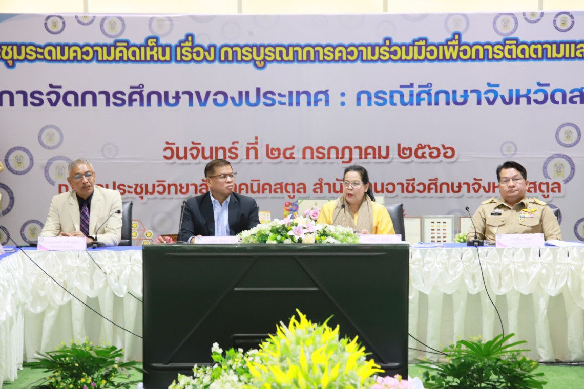 นางศิริพร ศริพันธุ์ ที่ปรึกษาด้านวิจัยและประเมินผลการศึกษา กล่าวว่า สำนักงานเลขาธิการสภาการศึกษา (สกศ.) ลงพื้นที่จัดประชุมระดมความคิดเห็น เรื่อง การบูรณาการความร่วมมือเพื่อการติดตามและประเมินผลการจัดการศึกษาของประเทศ : กรณีศึกษาจังหวัดสตูล โดยมีวัตถุประสงค์เพื่อรับทราบข้อมูลสภาพการดำเนินงาน แลกเปลี่ยนเรียนรู้ รับฟังความคิดเห็นที่ครอบคลุมประเด็นภารกิจของคณะอนุกรรมการด้านประเมินผลการจัดการศึกษา และคณะทำงานทั้ง 3 คณะ ได้แก่ คณะที่ 1 คณะทำงานติดตามและประเมินผลการจัดการศึกษา คณะที่ 2 คณะทำงานวิเคราะห์สภาวการณ์การศึกษา และคณะที่ 3 คณะทำงานประเมินผลประสิทธิภาพการใช้ทรัพยากรทางการศึกษา รวมถึงรับฟังข้อเสนอแนะแนวทางการดำเนินงานติดตามและประเมินผลการจัดการศึกษา เพื่อนำข้อค้นพบ และข้อเสนอแนะที่ได้ไปจัดทำข้อเสนอแนะเชิงนโยบายทางการศึกษาของประเทศต่อไป
