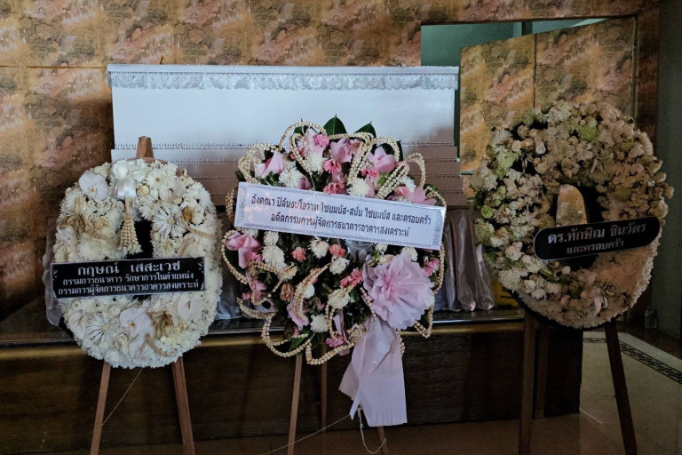 ล่าสุดเมื่อเวลา 11.00 น. วันที่27ก.ค.66ผู้สื่อข่าวเดินทางลงพื้นที่ตรวจสอบที่วัดเขมาภิรตาราม ต.สวนใหญ่ อ.เมือง จ.นนทบุรี เพื่อสอบถามกรณีดังกล่าวกับนายกิตติศักดิ์ คงมณีสุวรรณ์ ไวยาวัจกร วัดเขมาภิรตาราม กล่าวว่า เท่าที่ตนทราบทางเจ้าหน้าที่ฌาปนสถานของที่วัดแจ้งมาว่ามีการเริ่มสวดอภิธรรมตั้งแต่คืนวันที่ 20 ก.ค. ถึงวันที่ 24 ก.ค. ทั้งหมด 5 คืน มีการสวดอภิธรรม 5ซึ่งตนไม่มีความกังวล คือวัดของเราไม่มีความกังวลใด แ ทางเราบริการตลอดอยู่แล้ว ไม่ว่าจะเป็นอะไรยังไง 20 ก.ค. อยู่ที่ศาลา 2 วัดเขมา ตอนนี้ศพเก็บไว้ที่ศาลา ยังอยู่ศาลาเหมือนเดิมไม่ได้เคลื่อนย้ายไปไหน ไม่ขยับ 30 วัน แล้วเจ้าภาพว่าอย่างงั้น ตามหลักแล้วศพมาตั้งแต่ 20 ก.ค. แต่การเก็บศพคือการงดการสวดก็คือตั้งแต่หนึ่งใหม่ คือนับตั้งแต่วันที่ 24 ก.ค. ไปเลย ก็จะเป็น 25 ของเดือนหน้า ครบเดือน