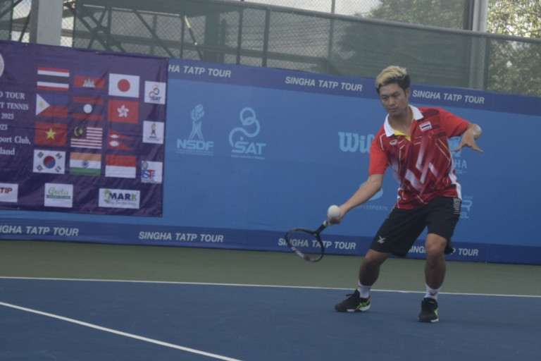 คู่ต่อมา ภัคพล เธียรชัยพงษ์ ทีมชาติไทยชุด เอ. ที่มีอาการเจ็บหลังรบกวนตั้งแต่เมื่อวานพ่ายให้นักหวดดาวรุ่งจากเกาหลีใต้ คิม แจ ฮูน 0 : 4