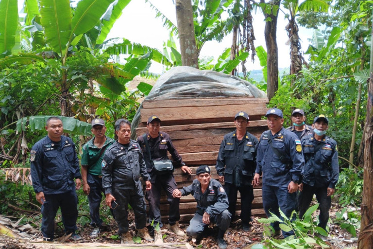 จนท.ป่าไม้ สกัดจับไม้สักแปรรูปแผ่นเหลี่ยมจำนวนมากเป็นไม้สดและดิบ ที่มอดไม้นำมากองซุกซ่อนปกปิดด้วยผ้าใบบริเวณป่ารอยต่อแม่ฮ่องสอน-เชียงใหม่ หวังลำเลียงขนย้ายในช่วงวันหยุดยาว