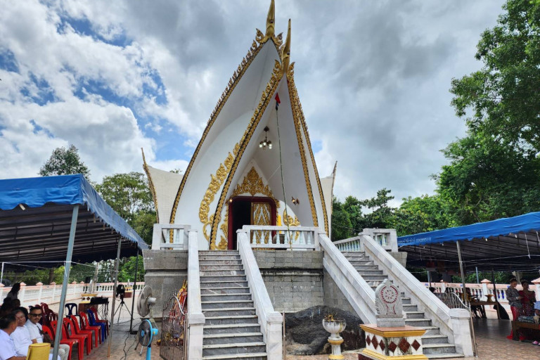 เมื่อไปถึงวัดหินโค้งพบประชาชนจำนวนมาก มาร่วมพิธีจนเนื่องแน่นรอบพระอุโบสถ วัดหินโค้ง ซึ่งเป็นพระอุโบสถทรงประยุกต์ รูปเรือสำเภา สร้างอยู่บนเนินเขาที่แวดล้อมไปด้วยต้นไม้ใหญ่
