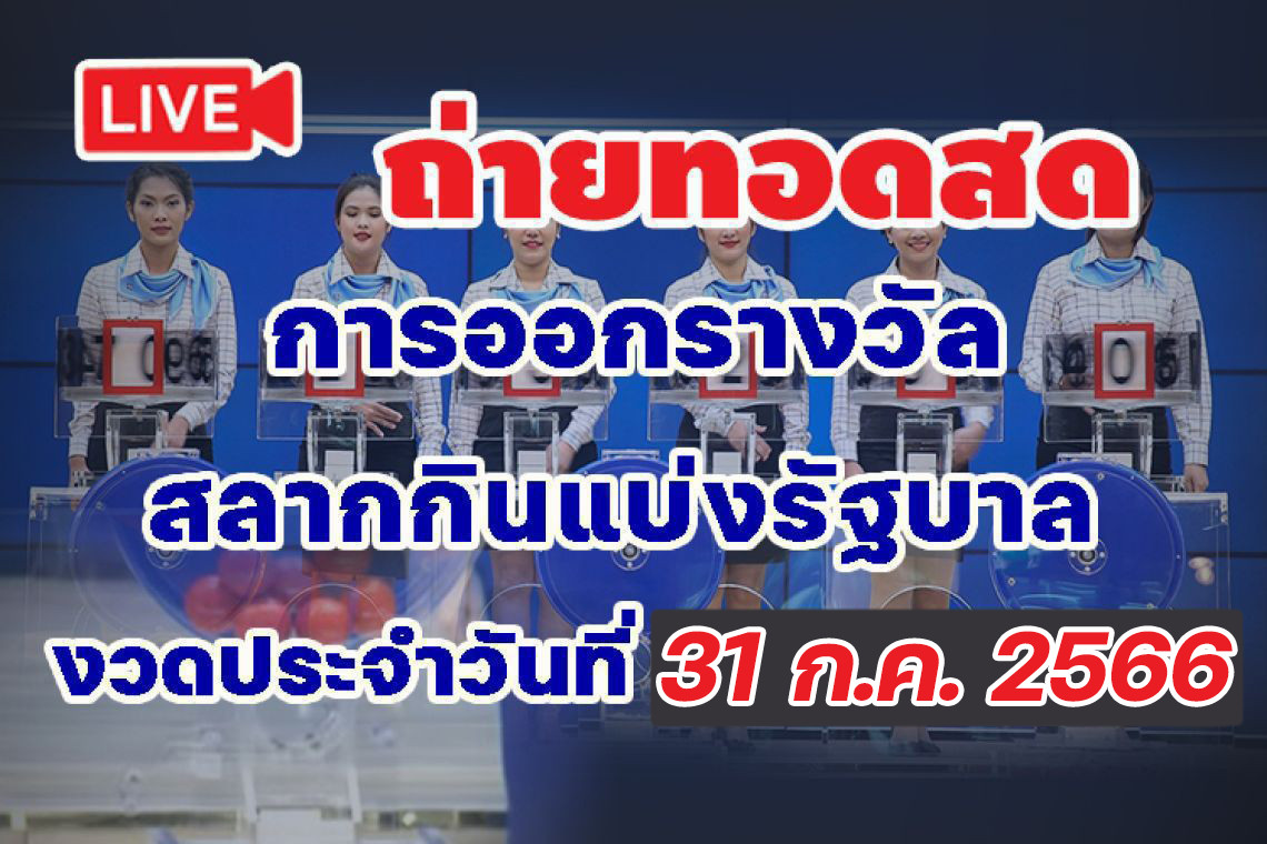 รับชมการถ่ายทอดสด ผลสลากกินแบ่งรัฐบาล งวดประจำวันที่ 31 กรกฎาคม 2566 หวยงวดนี้ จากสำนักงานสลากกินแบ่งรัฐบาล ตรวจหวย ร่วมลุ้นรางวัลที่ 1 เลขท้าย 2 ตัว เลขท้าย 3 ตัวและรางวัลอื่นๆ ไปพร้อมๆกัน