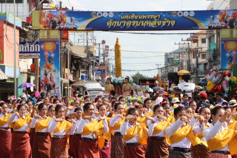 สุรินทร์ จัดยิ่งใหญ่ มหกรรมแห่เทียนพรรษาและตักบาตรบนหลังช้าง ขบวนฟ้อนรำสวยงามจากคุ้มวัดต่างๆอลังกาขบวนช้างกว่า 53 เชือก แต่งองค์สวยงามร่วมขบวนแห่