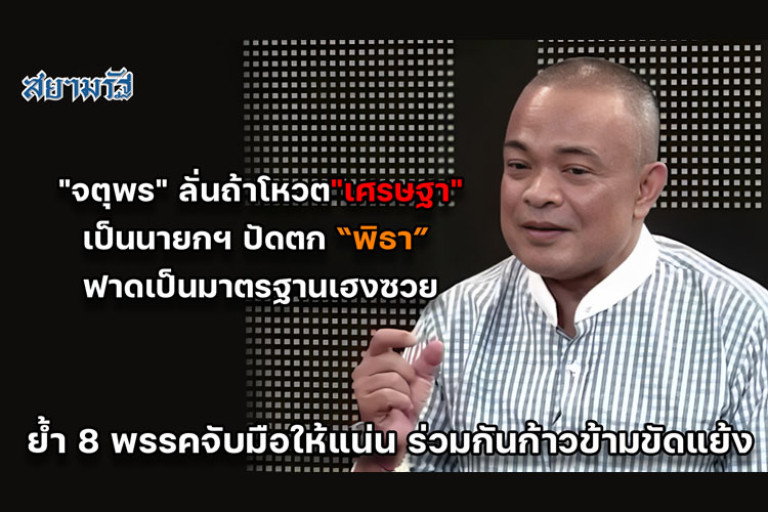 นอกจากนี้ นายจตุพร ยังมองว่า ถ้าโหวตเศรษฐาเป็นนายกฯ แต่ปัดตกพิธา ย่อมเป็นมาตรฐานเฮงซวย ย้ำ 8 พรรคจับมือให้แน่น ร่วมกันก้าวข้ามขัดแย้ง