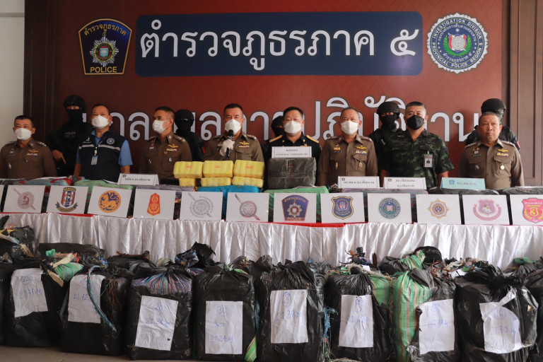 วันที่ 3 สิงหาคม 2566 พล.ต.ท.ปิยะ ต๊ะวิชัย ผู้บัญชาการตำรวจภูธร ภาค 5 พร้อมด้วยนายอภิกิต ฉ.โรจน์ประเสริฐ ผู้อำนวยการสำนักงานป้องกันและปราบปรามยาเสพติด ภาค 5 และหน่วยงานที่เกี่ยวข้อง ร่วมกันแถลงผลการจับกุมยาเสพติดรายสำคัญ ซึ่งจับกุมได้ในพื้นที่ อำเภอเชียงแสน จังหวัดเชียงราย เมื่อวันที่ 26 กรกฎาคม ที่ผ่านมา สามารถยึดของกลางเป็นยาบ้าได้กว่า 7 ล้านเม็ด
