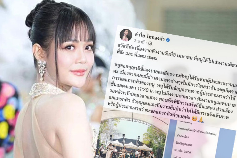 ขณะที่ "ลำไย ไหทองคำ" ได้รีบออกมาโพสต์ชี้แจง หลังถูกมองว่าเป็นต้นเหตุของเรื่องนี้ ว่า "สวัสดีค่ะ เนื่องจากคิวงานวันที่ 8 เมษายน ที่หนูได้ไปเล่นงานเดียวกับพี่จ๊ะและพี่แตน นะคะ