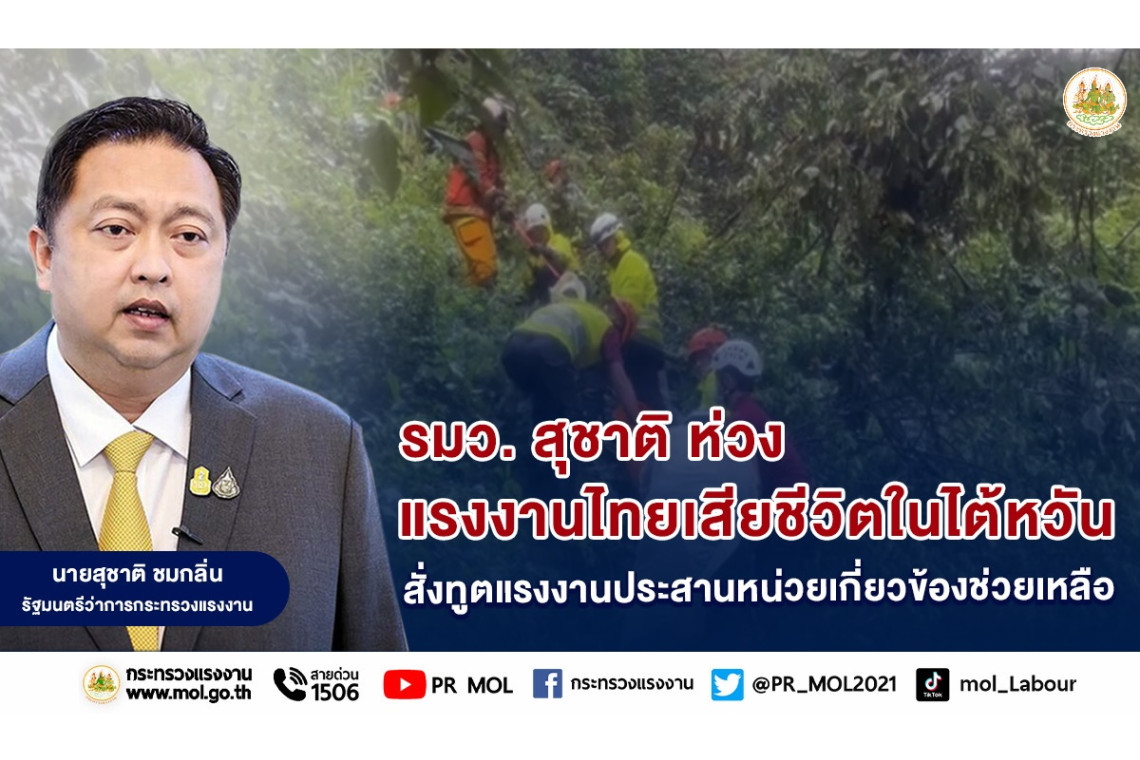 รมว.สุชาติ ห่วงแรงงานไทยเสียชีวิตในไต้หวัน สั่งทูตแรงงานประสานหน่วยเกี่ยวข้องช่วยเหลือ