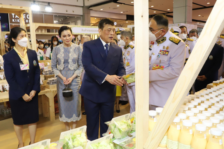 จากนั้น ทอดพระเนตรนิทรรศการแสดงผลสำเร็จของมูลนิธิโครงการหลวง ภายใต้โครงการสวมหมวกให้ดอย ศูนย์พัฒนาโครงการหลวงเลอตอ ต้นแบบชุมชนมั่นคงมีสุข ผลิตผลจากชา ผลสำเร็จการงานวิจัยของโครงการหลวง ดอกเอเดลไวส์ สื่อสายใยรักพระราชทานจากสมเด็จพระนางเจ้าฯ พระบรมราชินี ทอดพระเนตรนิทรรศการ หัตกรรมผ้ากัญชง และบุหงาโครงการหลง พร้อมผลิตภัณฑ์ของโครงการส่วนพระองค์ 13 โครงการ อาทิ มูลนิธิส่งเสริมศิลปาชีพ ในสมเด็จพระนางเจ้าสิริกิติ์ พระบรมราชินีนาถ พระบรมราชชนนีพันปีหลวง, มูลนิธิอาสาเพื่อนพึ่ง(ภาฯ)ยามยากสภากาชาดไทย, โครงการกำลังใจในพระดำริพระเจ้าหลานเธอ พระองค์เจ้าพัชรกิติยาภา โครงการหัตถกรรมโครงการหลวง โครงการหลวงบุหงาโครงการ มูลนิธิสมเด็จพระพันวัสสาอัยยิกาเจ้า ปันน้ำใจ โครงการเซรามิค สถาบันวิจัยจุฬาภรณ์ มูลนิธิภัทรมหาราชานุสรณ์ ในพระอุปถัมภ์ฯ มูลนิธิชัยพัฒนา ร้านภัทรพัฒน์ มูลนิธิสายใจไทย ในพระบรมราชูปถัมภ์ ร้านภูฟ้า โครงการส่วนพระองค์ สวนจิตรลดา อีกทั้งยังมีผลิตภัณฑ์จากดอยคำ เป็นต้น