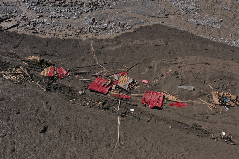 โดยสาเหตุเกิดจากธารน้ำแข็ง 2 แห่งในต้นน้ำของแม่น้ำเริ่มละลายอย่างหนักและไหลลงมาพร้อมกับฝนตกหนัก จนหน้าดินอุ้มน้ำไว้ไม่ไหว และถล่มลงมาในที่สุด