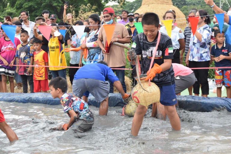 สนุกสุดมันส์ กับการแข่งขันจับปลาไหลมือเปล่างาน "เกษตรและของดีเมืองอ่างทอง ประจำปี 2566" นักท่องเที่ยวร่วมลุ้นร่วมเชียร์กันอย่างสนุกสนาน ผู้ชนะหิ้วปลาไหลพร้อมเครื่องแกง กลับบ้านไปได้เลย