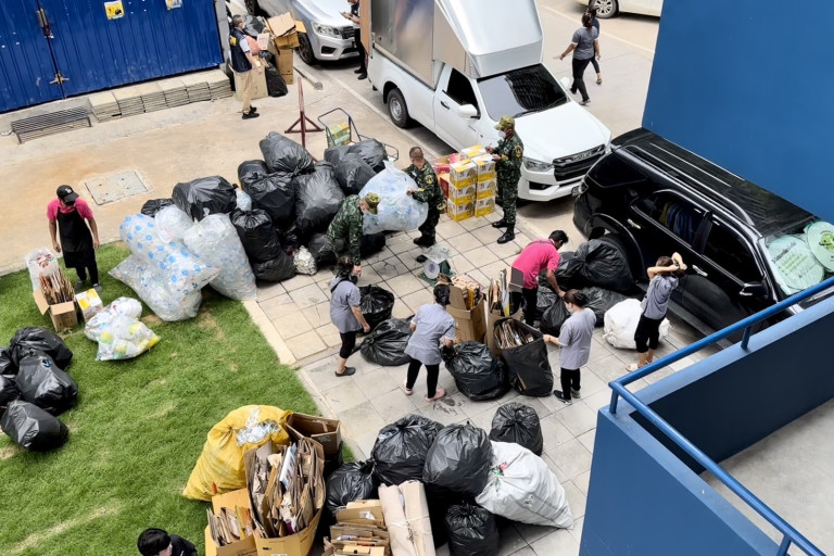 เมื่อเวลา 13.00 น. วันที่ 7 ส.ค. 2566 ที่บริเวณด้านข้างอาคารพิทักษ์สันติ กองบัญชาการตำรวจสอบสวนกลาง ถนนพหลโยธิน จตุจักร กทม. พล.ต.ต.จิรเดช พระสว่าง ผบก.อก.บช.ก.ตรวจดูแลกิจกรรม"ธนาคารขยะ” ของกองบัญชาการตำรวจสอบสวนกลาง (CIB) ตามที่ พล.ต.ท.จิรภพ ภูริเดช ผู้บัญชาการตำรวจสอบสวนกลางประกาศเชิญชวนข้าราชการตำรวจในสังกัด และครอบครัวที่พักอาศัยในพื้นที่กองบัญชาการตำรวจสอบสวนกลางที่มีความกว้างใหญ่เสมือนเป็นเมืองสอบสวนกลาง เพื่อคัดแยกขยะเพื่อแลกเป็นเงิน ไม่ว่าจะเป็นขวดพลาสติก ขวดแก้ว กระป๋อง กระดาษลัง เพื่อนำมาชั่งน้ำหนัก ที่โรงขยะรีไซเคิล ลดปริมาณขยะ และให้สามารถนำขยะกลับมาใช้ได้ เกิดเป็นโครงการ “ธนาคารขยะและการจัดการสิ่งแวดล้อมขึ้น” เพื่อเป็นการสร้างวินัย จิตสำนึก และการมีส่วนร่วมของข้าราชการตำรวจสอบสวนกลาง (CIB) ในการจัดการขยะตั้งแต่ต้นทาง ส่งเสริมการแยกขยะก่อนทิ้ง เพื่อให้สามารถนำขยะเหล่านั้น ไปรีไซเคิล หรือนำไปบริจาคเพื่อช่วยเหลือสังคมต่อได้ โดยหากใครที่ยังไม่รับเป็นเงินสดก็สามารถเปิดบัญชีธนาคารขยะ เก็บสะสมจำนวนเงินในรอบนั้นๆ ไว้ก่อน แล้วค่อยนำมาถอนเป็นเงินสดในคราวหลัง ซึ่งวันนี้มีทั้งเจ้าหน้าที่ตำรวจหลายนาย ตลอดจนนักการภารโรงและแม่บ้านจำนวนมาก ทยอยนำขยะที่คัดแยกมาชั่งน้ำหนัก เบิกเงินและฝากบัญชีกันจำนวนมาก